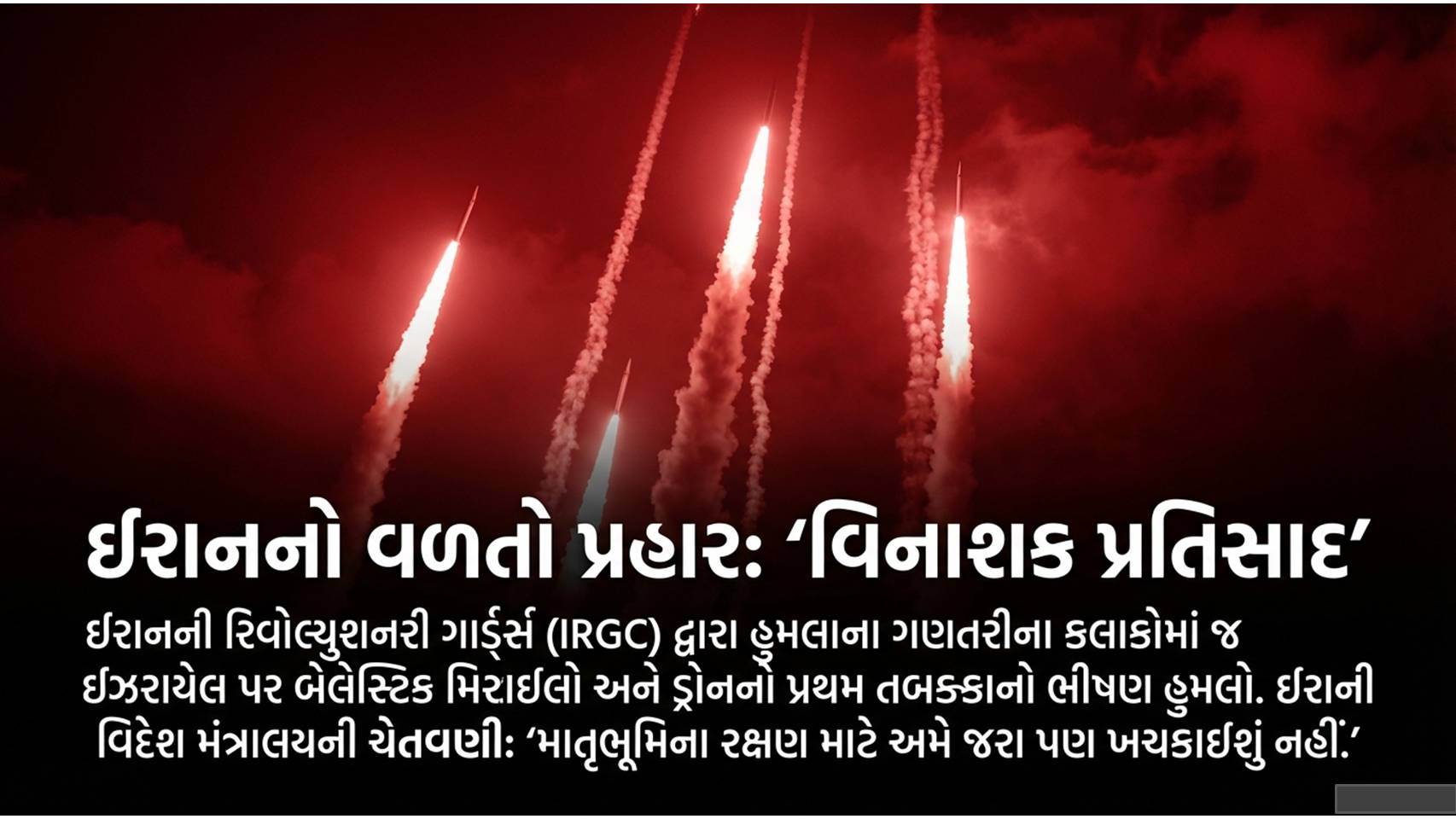 મહાયુદ્ધ : ઈરાને આ હુમલાનો ‘ક્રશિંગ રિસ્પોન્સ’ (ચગદી નાખતો જવાબ) આપવાની પ્રતિજ્ઞા લીધી છે. ઈરાનના રિવોલ્યુશનરી ગાર્ડ્સે ઇઝરાયેલ પર મિસાઇલો અને ડ્રોનનો મારો ચલાવ્યો છે, જેના કારણે ઇઝરાયેલમાં સાયરેન ગુંજી ઉઠ્યા છે.