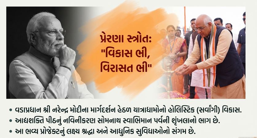 “વડાપ્રધાન શ્રી નરેન્દ્રભાઈ મોદીની પ્રેરણા અને માર્ગદર્શન હેઠળ આદ્યશક્તિ પીઠ અંબાજીનું હોલિસ્ટિક અને ફ્યુચરિસ્ટિક વિકાસ કાર્ય થઈ રહ્યું છે.”