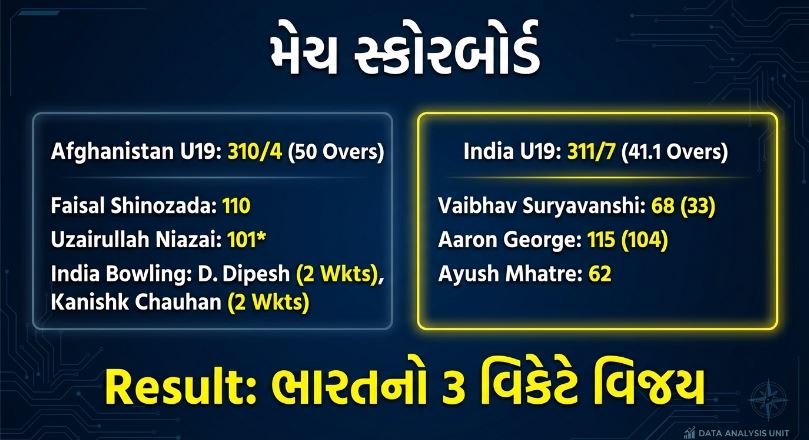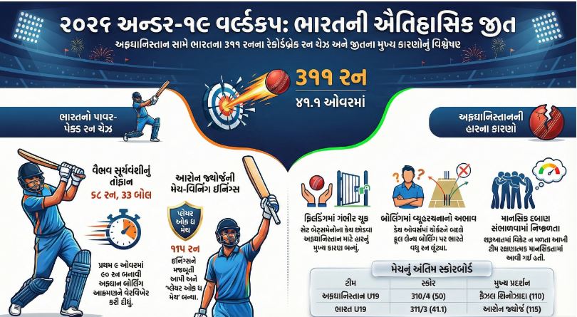 અન્ડર 19 વર્લ્ડકપ 2026 : ૩૧૦ રનનો વિશાળ સ્કોર, ટોપ ઓર્ડરમાં બે સેન્ચ્યુરી અને છેલ્લી ૧૦ ઓવરમાં તોફાની બેટિંગ છતાં અફઘાનિસ્તાન જીતથી દૂર કેમ રહી ગયું? અને ભારતે આ અસંભવને સંભવ કેવી રીતે બનાવી દીધું—ચાલો વિગતે સમજીએ.