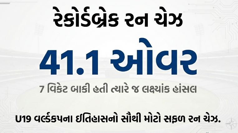 - U19 વર્લ્ડકપનો સૌથી મોટો સફળ રન ચેઝ