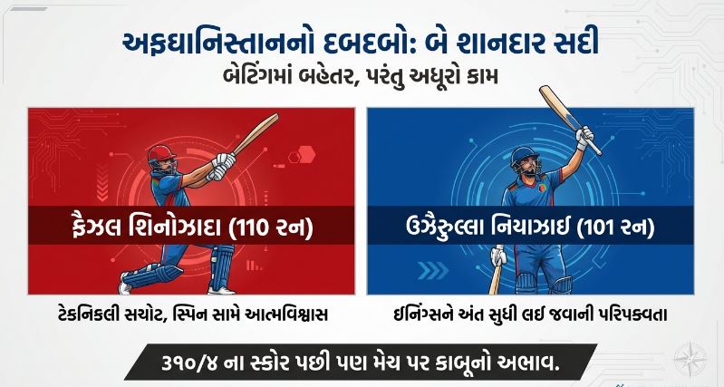- *ઉઝૈરુલ્લા નિયાઝાઈ (101)**: ઇનિંગ્સને અંત સુધી લઈ જવાની પરિપક્વતા