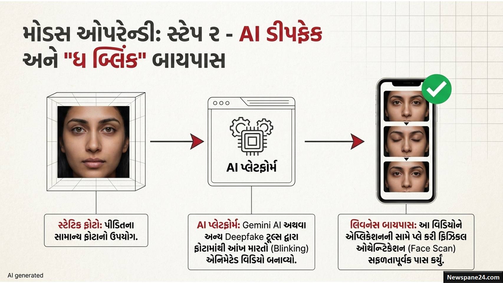 સામાન્ય રીતે, આધારમાં ફેરફાર કરવા માટે જે-તે વ્યક્તિની પ્રત્યક્ષ હાજરી અથવા બાયોમેટ્રિક જરૂરી હોય છે. પરંતુ આ ગેંગ Gemini AI અથવા Meta AI જેવા અત્યાધુનિક સાધનોનો ઉપયોગ કરતી હતી. તેઓ વ્યક્તિના ફોટા પરથી એવો AI Generated વિડિયો બનાવતા જેમાં વ્યક્તિની આંખો પલકતી (Blink કરતી) દેખાય. જ્યારે સિસ્ટમ લાઈવ ફોટો કે સ્કેન માંગે, ત્યારે આ વિડિયો સ્ક્રીન પર બતાવીને સિસ્ટમને છેતરી લેતા હતા. આ રીતે ફિઝિકલ ઓથેન્ટિકેશનને બાયપાસ કરી દેવામાં આવતું હતું.