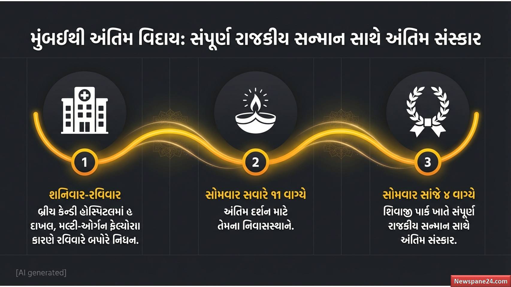 આશા ભોંસલે : તેમને શનિવારે સાંજે હોસ્પિટલમાં દાખલ કરવામાં આવ્યા હતા. રવિવારે બપોરે ડો. પ્રતીત સમદાનીએ તેમના નિધનની પુષ્ટિ કરી હતી. તેમના પુત્ર આનંદ ભોંસલેએ જણાવ્યું કે, જેઓ અંતિમ દર્શન કરવા ઈચ્છે છે તેઓ આવતીકાલે સવારે 11 વાગ્યે તેમના નિવાસસ્થાને આવી શકે છે. રાજ્ય સરકાર દ્વારા જાહેર કરવામાં આવ્યું છે કે તેમના અંતિમ સંસ્કાર આવતીકાલે સાંજે 4 વાગ્યે શિવાજી પાર્કમાં સંપૂર્ણ રાજકીય સન્માન સાથે કરવામાં આવશે.