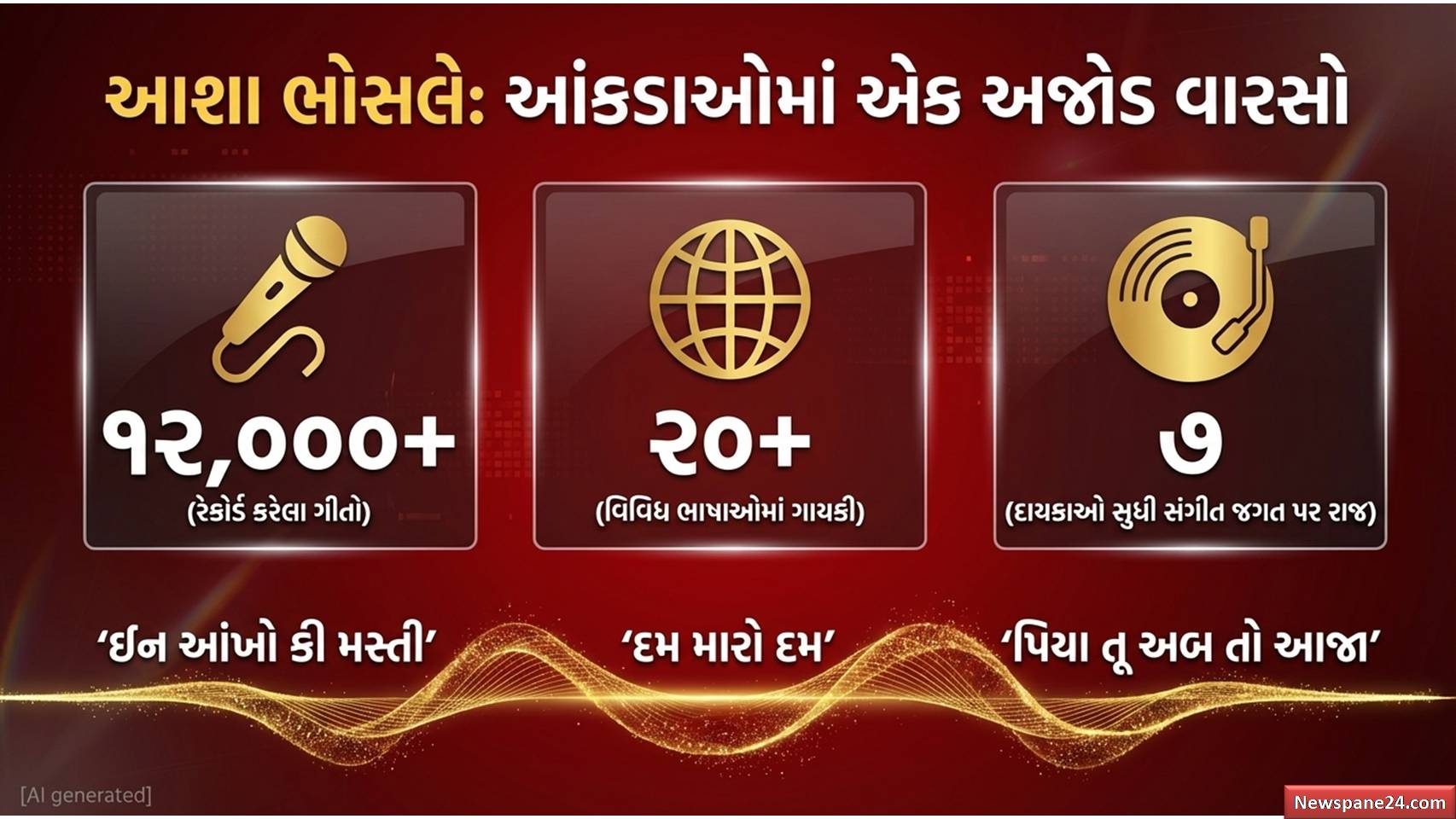 આશા તાઈ આજે ભલે આપણી વચ્ચે નથી, પણ તેમનો અવાજ હંમેશા રેડિયો પર, ટીવી પર અને આપણા મોબાઈલમાં ગુંજતો રહેશે. એક એવો અવાજ જેણે પ્રેમ, વિરહ, મસ્તી અને ગંભીરતા – દરેક લાગણીને જીવંત કરી છે.