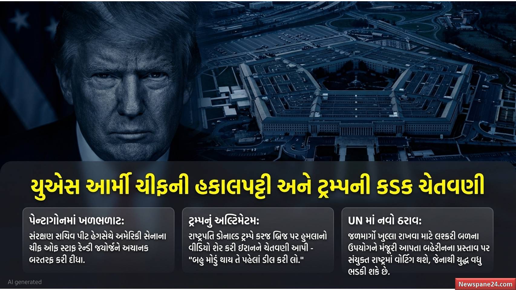 ઇઝરાયેલ-ઈરાન યુદ્ધ : પેન્ટાગોને યુદ્ધ વચ્ચે અમેરિકી આર્મી ચીફ ઓફ સ્ટાફ રેન્ડી જ્યોર્જને હોદ્દા પરથી હટાવી દીધા છે, જે એક મોટો ફેરફાર માનવામાં આવે છે. જ્યારે અમેરિકાનું સૌથી મોટું એરક્રાફ્ટ કેરિયર, USS Gerald R. Ford, ફરીથી દરિયામાં ઉતરી ગયું છે અને કોઈપણ મિશન માટે તૈયાર છે.