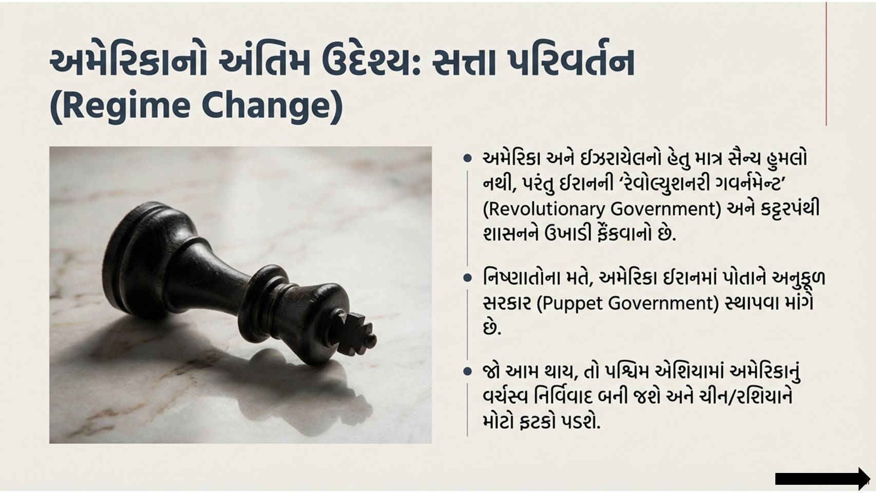 • તેલનો ખેલ: દુનિયાનું 30% તેલ અને ગેસ હર્મુઝની સામુદ્રધુની (Strait of Hormuz) માંથી પસાર થાય છે. જો ઈરાન આ રસ્તો બંધ કરી દે, તો આખી દુનિયાની અર્થવ્યવસ્થા ઠપ્પ થઈ શકે છે.