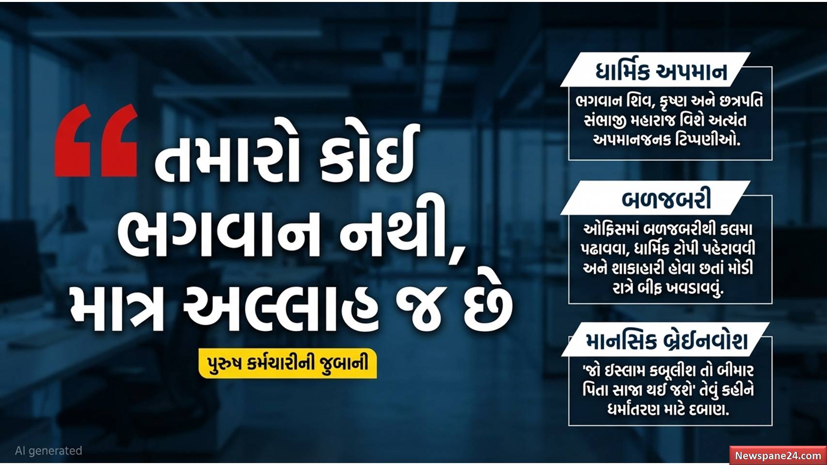 કોર્પોરેટ જેહાદ : આ કેસમાં માત્ર મહિલાઓ જ નહીં, પણ પુરુષ કર્મચારીઓની પણ ધાર્મિક લાગણી દુભાવવામાં આવી છે. એક પીડિત પુરુષ કર્મચારી ‘સંજય’ (નામ બદલ્યું છે) ની જુબાની હૃદયદ્રાવક છે. સંજયે જણાવ્યું કે તેના ટીમ લીડર તૌસિફ અત્તાર અને દાનિશ શેખ તેને સતત ધર્મ વિશે પ્રશ્નો પૂછતા હતા.
