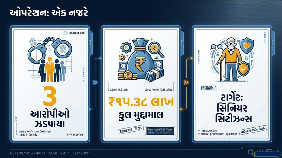 અમદાવાદ શહેર ક્રાઈમ બ્રાન્ચ : પકડાયેલા આરોપીઓની પૂછપરછમાં ચોંકાવનારા ખુલાસા થયા છે. આ ટોળકીએ માત્ર સરદારનગર જ નહીં, પણ વાસણા બસ સ્ટેન્ડ, નરોડા પાટિયા અને જશોદાનગર જેવા વિસ્તારોમાં પણ વૃદ્ધો અને મહિલાઓને શીકાર બનાવી હોવાની કબૂલાત કરી છે.