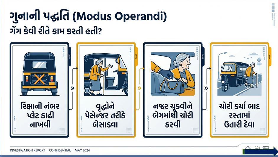 • વૃદ્ધોને પેસેન્જર તરીકે બેસાડી, વાતોમાં ભોળવી કે નજર ચૂકવી તેમના થેલામાંથી દાગીના કે રોકડ સેરવી લેતા.