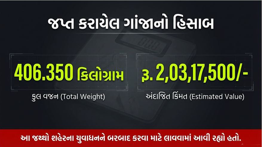 ક્રાઈમ બ્રાન્ચ : ૪૦૬ કિલો ગાંજો અને ૨.૦૮ કરોડનો મુદ્દામાલ
