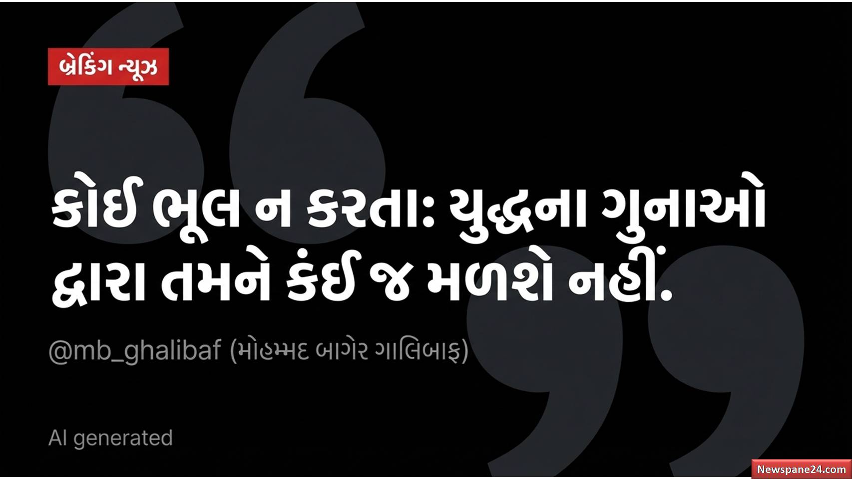ખાડી યુદ્ધ : ગલીબાફે રવિવારે સોશિયલ મીડિયા પ્લેટફોર્મ ‘X’ પર એક પોસ્ટ દ્વારા ટ્રમ્પને સીધો પડકાર ફેંક્યો હતો. તેમણે કહ્યું કે, ટ્રમ્પના “બેજવાબદાર પગલાં” ને કારણે આખું મધ્ય પૂર્વ વિસ્તાર યુદ્ધની આગમાં હોમાઈ જશે. ઇરાનનો આરોપ છે કે ટ્રમ્પ માત્ર ઇઝરાયેલના વડાપ્રધાન બેન્જામિન નેતન્યાહુના આદેશોનું પાલન કરી રહ્યા છે, જે વિનાશક સાબિત થઈ શકે છે.