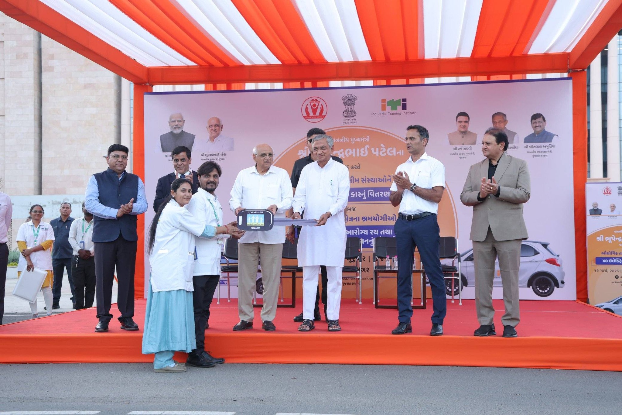 ગાંધીનગર: ગુજરાતના વિકાસ મોડલમાં હવે વધુ એક સુવર્ણ પ્રકરણ ઉમેરાયું છે. રાજ્યના મુખ્યમંત્રી શ્રી ભૂપેન્દ્ર પટેલે આજે ગાંધીનગર ખાતેથી શ્રમિકોના સ્વાસ્થ્ય અને યુવાનોના કૌશલ્ય વિકાસ માટે બે મહત્વપૂર્ણ યોજનાઓનું લોકાર્પણ કર્યું છે. એક તરફ શ્રમિકોના ઘરઆંગણે સ્વાસ્થ્ય સેવાઓ પહોંચાડવા માટે ‘ધનવંતરી આરોગ્ય રથ’ની સંખ્યામાં વધારો કરવામાં આવ્યો છે, તો બીજી તરફ બદલાતા સમય સાથે તાલ મિલાવવા ITI ના વિદ્યાર્થીઓ માટે અત્યાધુનિક ઇલેક્ટ્રિક કારની ભેટ આપવામાં આવી છે.