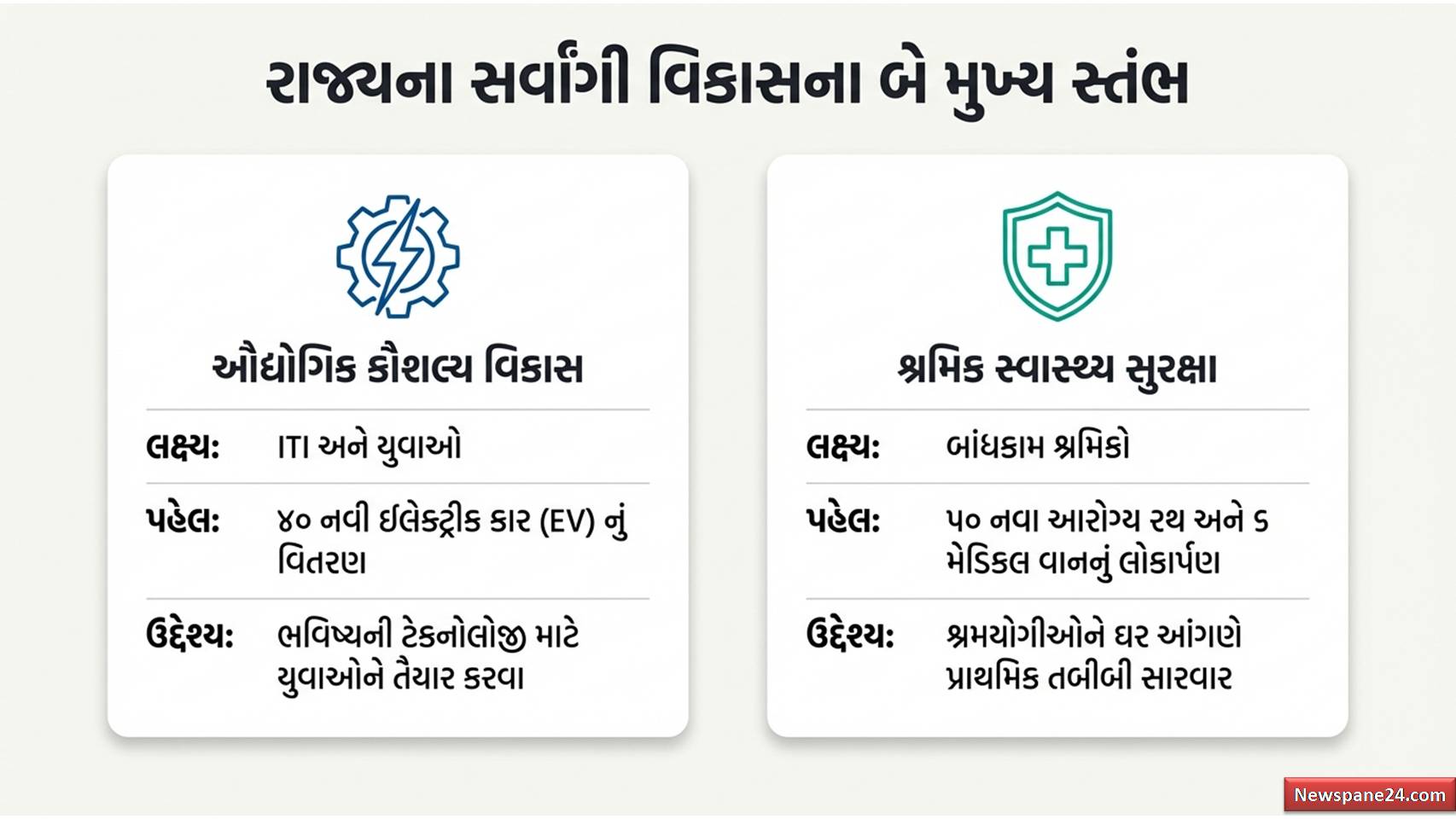 ગુજરાત સરકાર : ગુજરાતના શ્રમિકો અને યુવાનો માટે મોટા સમાચાર : CM ભૂપેન્દ્ર પટેલે આપી ‘ડબલ’ ભેટ; હવે ઘરે આવશે દવાખાનું અને ITIમાં દોડશે ઇલેક્ટ્રિક કાર!