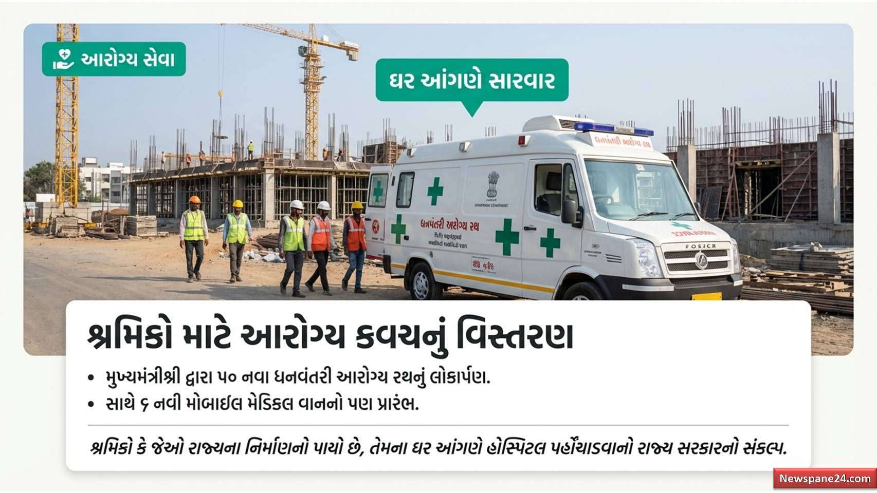 ગુજરાત સરકાર : આ નવી સેવાઓ શરૂ થતાની સાથે જ હવે રાજ્યના ખૂણેખૂણે એટલે કે તમામ 34 જિલ્લાઓમાં કુલ 206 ધનવંતરી આરોગ્ય રથ અને 31 મોબાઇલ મેડિકલ વાન કાર્યરત થઈ જશે. આનો સીધો અર્થ એ છે કે હવે શ્રમિકોએ સારવાર માટે દૂર સુધી જવાની જરૂર નહીં પડે, પરંતુ દવાખાનું પોતે તેમના કાર્યસ્થળ કે વસવાટ સુધી પહોંચશે.
