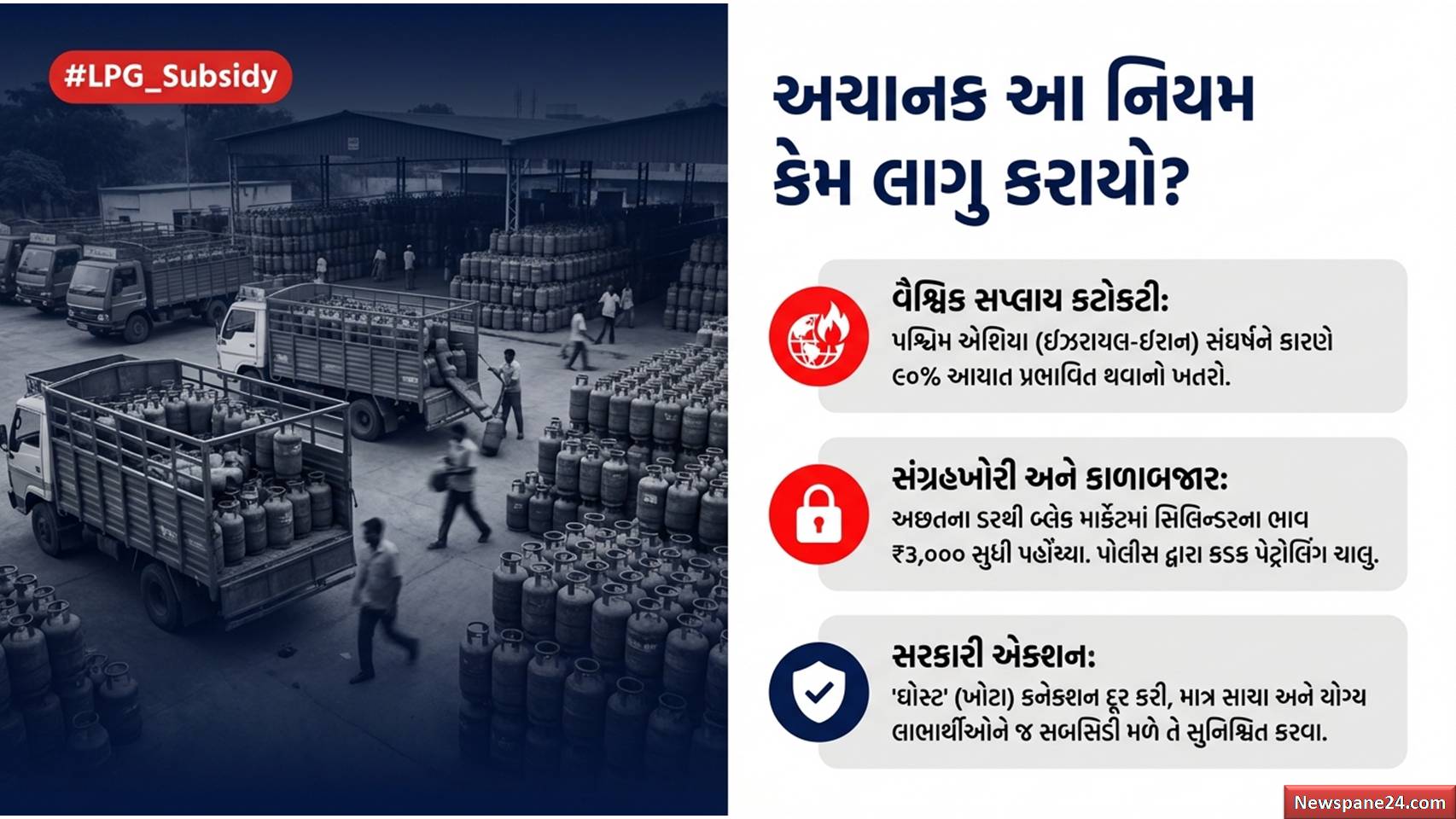 ગેસ ગ્રાહક : હાલમાં ઈઝરાયેલ અને ઈરાન વચ્ચે ચાલી રહેલા સંઘર્ષની સીધી અસર ભારતના ઈંધણ પુરવઠા પર પડી છે. પશ્ચિમ એશિયામાં અમેરિકા અને ઈઝરાયેલના હુમલાને કારણે હોર્મુઝ સ્ટ્રેટ (Strait of Hormuz) માંથી જહાજોની અવરજવર અટકી ગઈ છે. ભારત તેની ગેસ જરૂરિયાતનો 90% હિસ્સો આ માર્ગેથી આયાત કરે છે. જહાજો અટકી જવાથી દેશના અનેક શહેરોમાં ગેસ સિલિન્ડરની ભારે અછત સર્જાઈ છે. આ અછતને કારણે બજારમાં ગભરાટ ફેલાયો છે અને લોકો પેનિક બુકિંગ (ગભરાટમાં આગોતરું બુકિંગ) કરી રહ્યા છે.