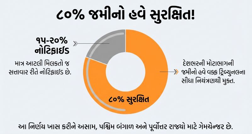 - 🏠 ૮૦% જમીનો ફ્રી: દેશભરની મોટાભાગની જમીનો હવે વક્ફ દાવાથી બહાર