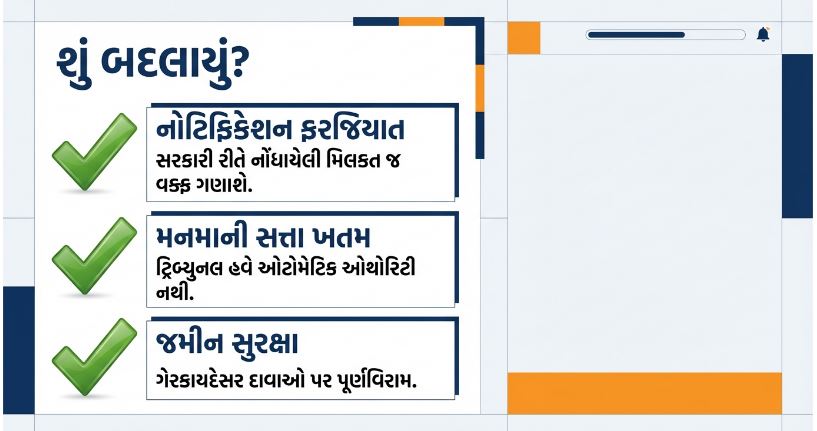 - 🧾 નોટિફિકેશન ફરજિયાત : સરકારી રીતે નોંધાયેલી મિલકત જ વક્ફ ગણાશે