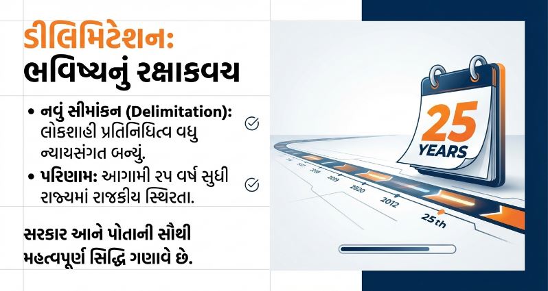 - 🧮 સીમાંકન વ્યૂહરચના : આગામી ૨૫ વર્ષ સુધી રાજકીય સંતુલન સુરક્ષિત