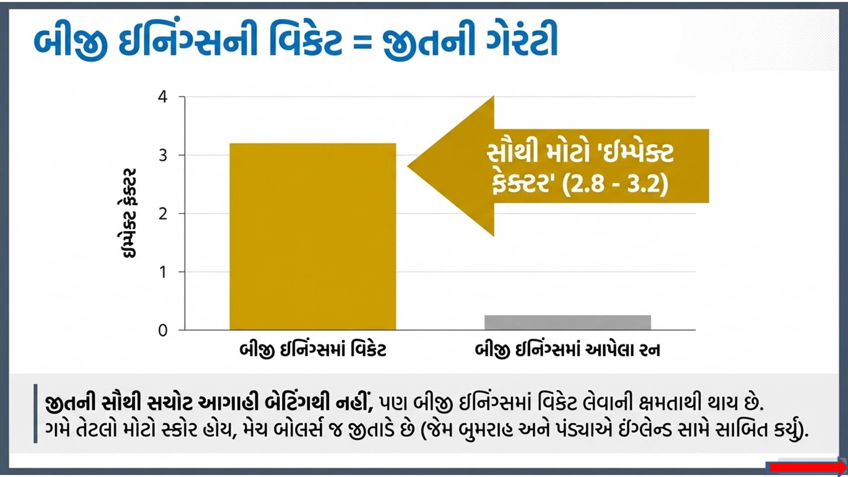 બુમરાહ જેવા ‘વન્સ-ઇન-એ-જનરેશન’ બોલરે સાબિત કર્યું કે ભલે સ્કોર ગમે તેટલો મોટો હોય, પણ સચોટ લાઈન અને લેન્થથી બેટ્સમેનોને રોકી શકાય છે. અભ્યાસ પણ દર્શાવે છે કે જે ટીમો બીજી ઇનિંગમાં વધુ વિકેટ ઝડપે છે, તેમની જીતવાની શક્યતા અનેકગણી વધી જાય છે.