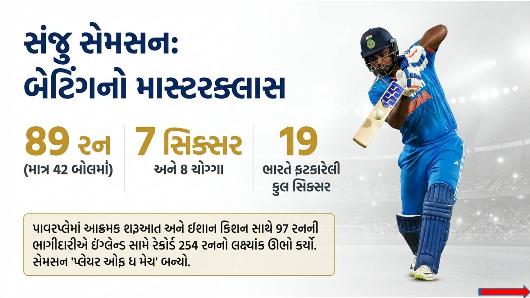 ટી20 વર્લ્ડ કપ 2026 : સંજુ સેમસનનો રુદ્ર અવતાર : ઇંગ્લેન્ડના બોલરો લાચાર