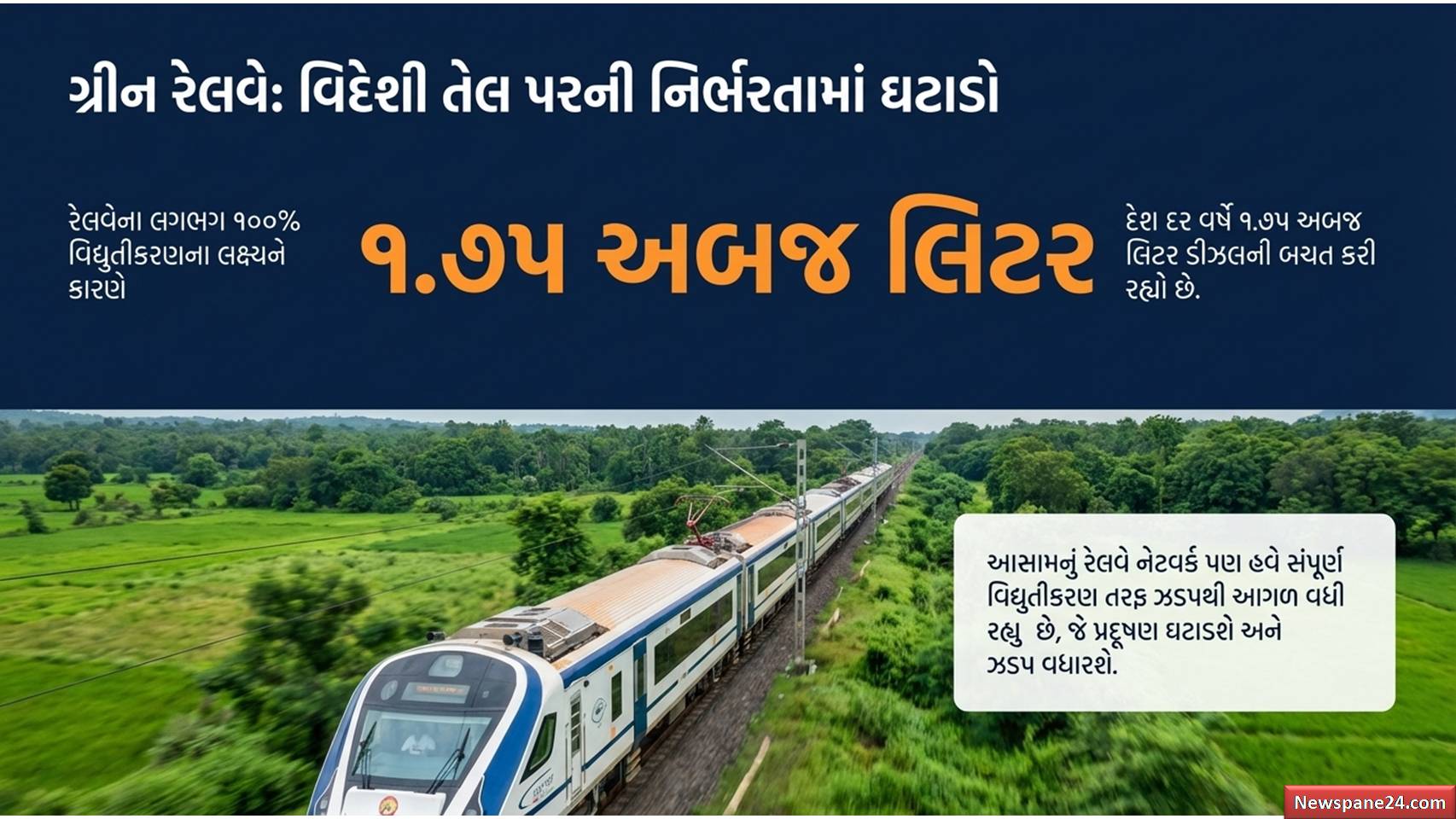 - રેલવેનું વિદ્યુતીકરણ: દેશનું લગભગ આખું રેલ નેટવર્ક હવે ઇલેક્ટ્રિક રૂટ્સથી જોડાઈ રહ્યું છે, જેનાથી આશરે 1.75 અબજ લિટર ડીઝલની બચત થઈ રહી છે.