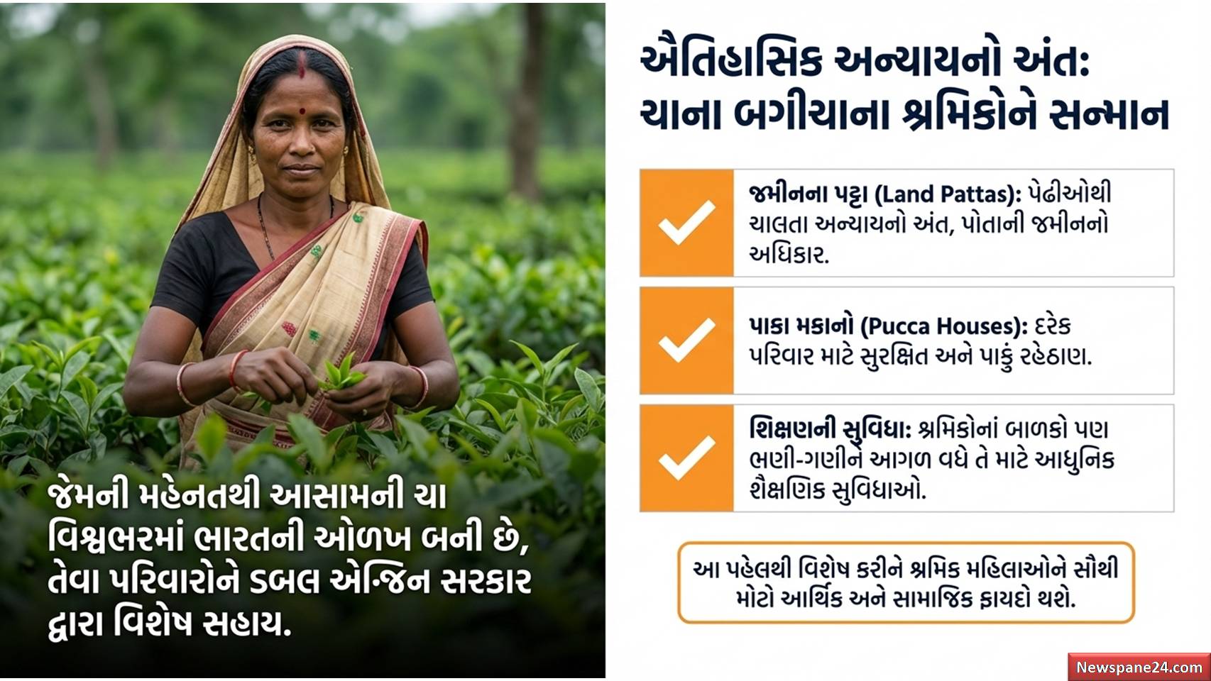 મોદીનો માસ્ટરસ્ટ્રોક : આસામની ઓળખ ગણાતા ચાના બગીચાના કામદારો માટે સરકારે મોટી પહેલ કરી છે. અનેક પરિવારોને જમીનના પટ્ટા (land pattas) વિતરિત કરવામાં આવ્યા છે, જેથી તેઓને પાકા મકાનો મળી શકે. આ ઉપરાંત, નિમાતી ઘાટ અને બિશ્વનાથ ઘાટ પર આધુનિક ક્રુઝ ટર્મિનલ બનાવવાનું કામ પણ શરૂ કરવામાં આવ્યું છે, જે સ્થાનિક રોજગાર અને પ્રવાસનને નવી ઊંચાઈઓ પર લઈ જશે.
