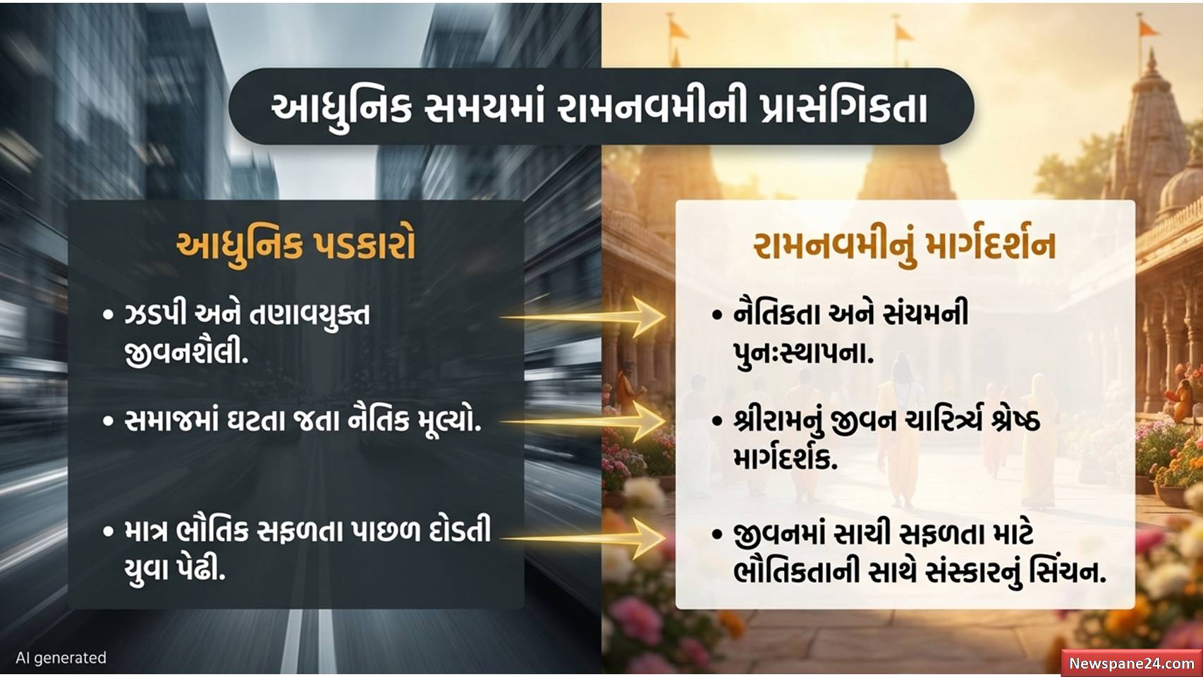 આજનો યુગ ટેકનોલોજી અને ઝડપનો છે, પરંતુ માનવીય મૂલ્યો ક્યાંક ખોવાઈ રહ્યા છે. આવા સમયે રામનવમીનો તહેવાર વધુ પ્રસ્તુત બને છે.