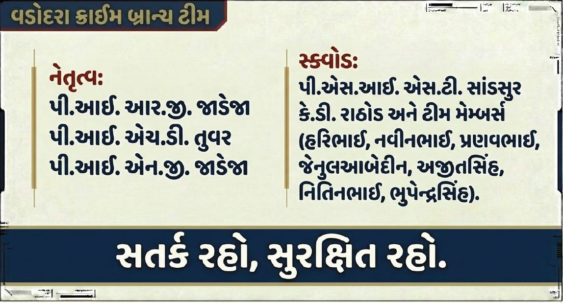 👮 વડોદરા ક્રાઈમ બ્રાન્ચ નું ટીમ વર્ક