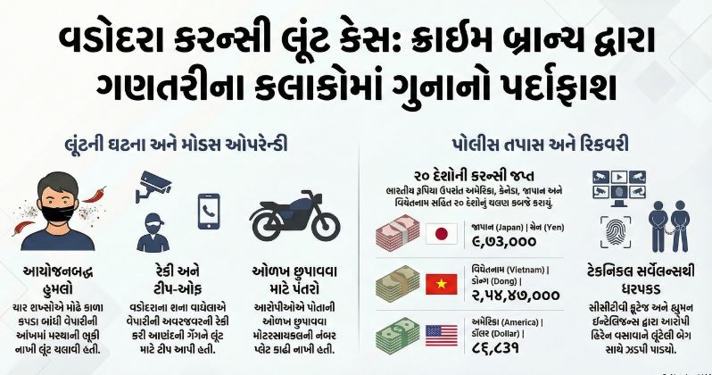 વડોદરા લૂંટ : ફિલ્મી સ્ટાઈલમાં ૧૦ લાખની લૂંટ! ક્રાઈમ બ્રાન્ચે ગણતરીના સમયમાં ગુનાનો ભેદ ઉકેલ્યો