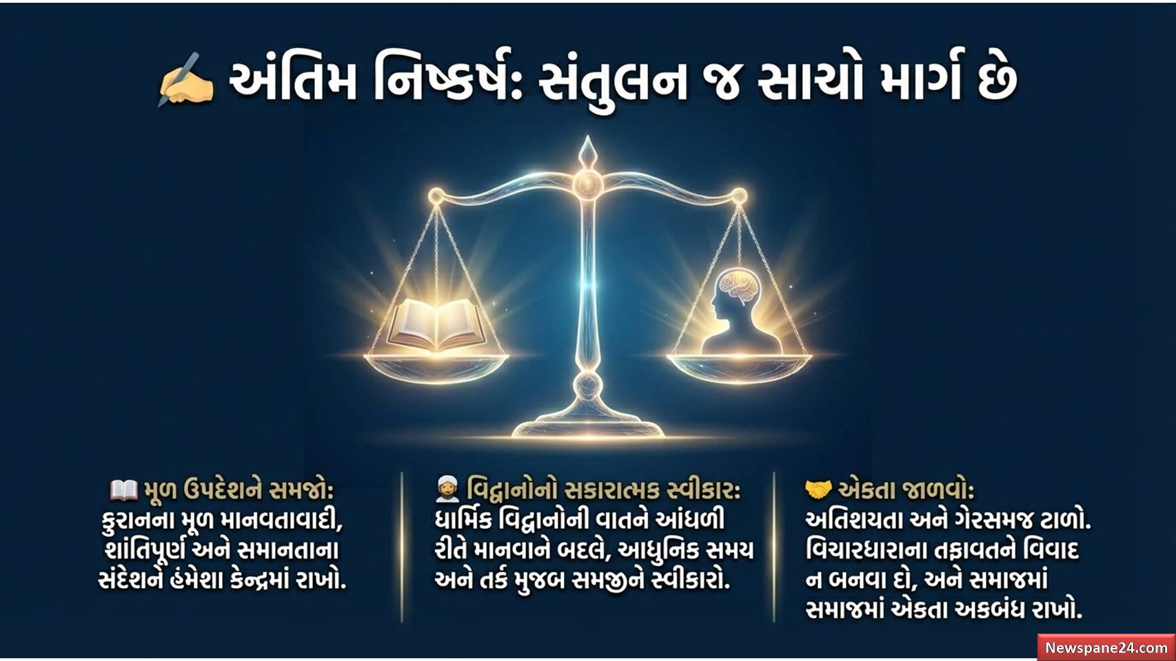 સાચો માર્ગ કયો? સૌથી શ્રેષ્ઠ રસ્તો એ છે કે આપણે ધર્મના મૂળ ઉપદેશોને સમજીએ અને આધુનિક સમય સાથે તેનો સમન્વય કરીએ. વિદ્વાનોની વાત સાંભળવી જરૂરી છે, પણ સાથે સાથે એકતા અને માનવતા જાળવી રાખવી એ જ સાચો ધર્મ છે.