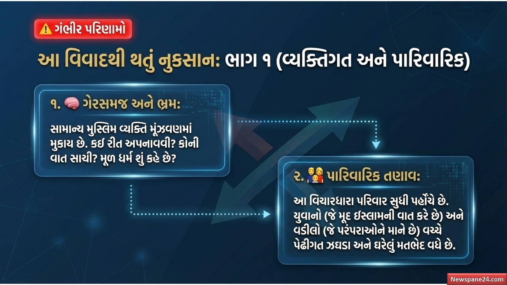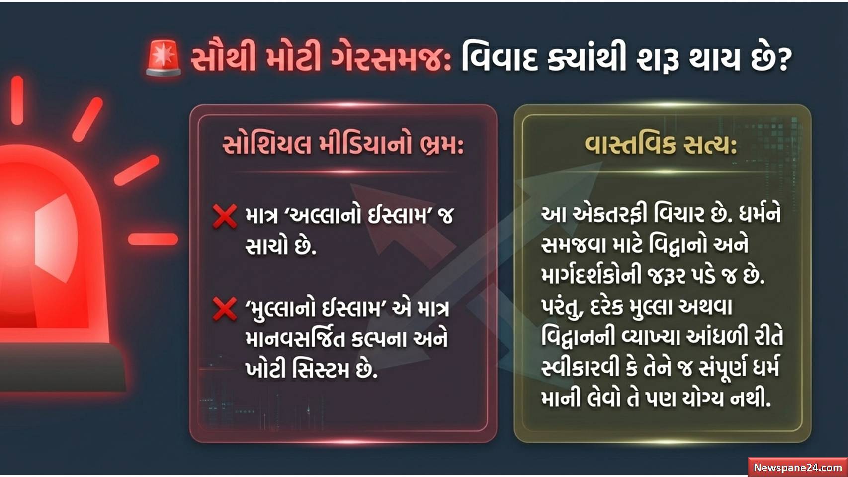 📢 સાચો માર્ગ કયો? ‘અલ્લાના ઇસ્લામ’ની સરળતા અને ‘મુલ્લાના ઇસ્લામ’ની પરંપરા વચ્ચેની અસલી હકીકત! જાણો આ સોશિયલ મીડિયા વિવાદનું સત્ય! 🌙 કુરાનનો શુદ્ધ સંદેશ કે મૌલવીઓના કડક નિયમો? ‘અલ્લાનો ઇસ્લામ’ અને ‘મુલ્લાનો ઇસ્લામ’ અંગેની ગેરસમજ દૂર કરો.