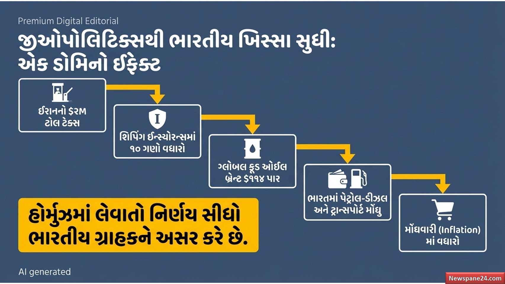- ચિંતાની વાત: જો ઈરાન મિત્ર દેશો પર પણ ટેક્સ લાદશે, તો ભારત પર આર્થિક બોજ વધશે. આ ઉપરાંત, દરિયાઈ વીમા (Insurance) ના પ્રીમિયમમાં પણ 10 ગણો વધારો થયો છે, જે મોંઘવારી વધારી શકે છે.
