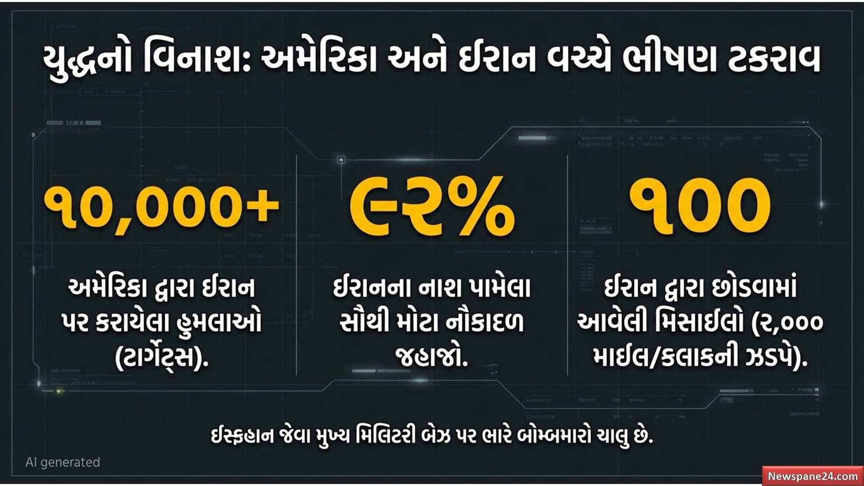 - અમેરિકાએ ઈરાનના 10,000 થી વધુ લક્ષ્યો પર હુમલા કર્યા છે અને દાવો કર્યો છે કે ઈરાનની 92% મોટી નેવી નષ્ટ થઈ ગઈ છે.