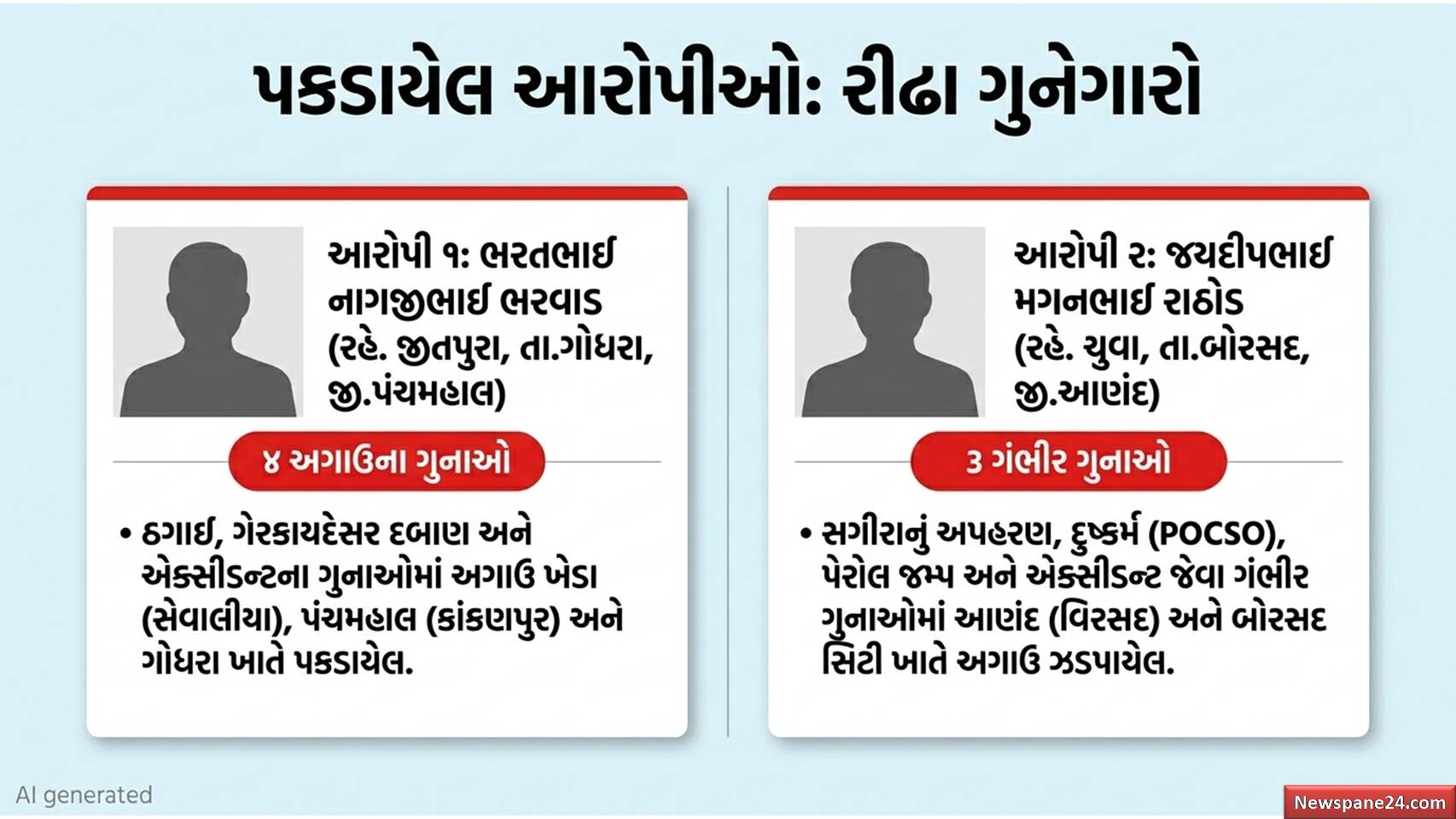 - ભરત ભરવાડ: આ અગાઉ ઠગાઈ, દબાણ અને એક્સિડન્ટ જેવા 04 જેટલા ગુનાઓમાં પકડાઈ ચુક્યો છે.