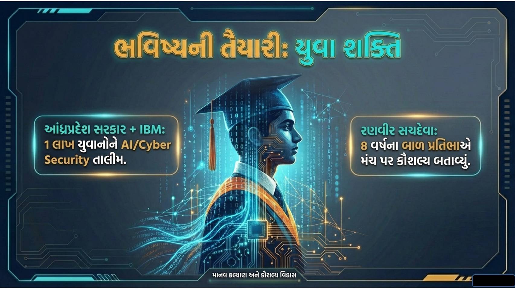 આ એઆઈ સમિટમાં માત્ર ટેકનોલોજી નહીં, પણ માનવ કલ્યાણના મુદ્દાઓ પર પણ ચર્ચા થઈ હતી. આંધ્રપ્રદેશ સરકારે IBM સાથે મળીને 1 લાખ યુવાનોને એઆઈ અને સાયબર સિક્યુરિટીમાં તાલીમ આપવાના કરાર કર્યા છે. 8 વર્ષના નાના બાળક રણવીર સચદેવા જેવા નવયુવાન ટેલેન્ટે પણ આ મંચ પર પોતાની આવડત બતાવી હતી.