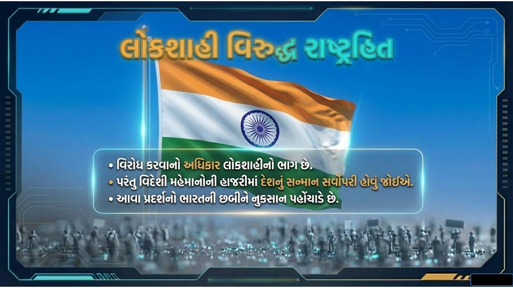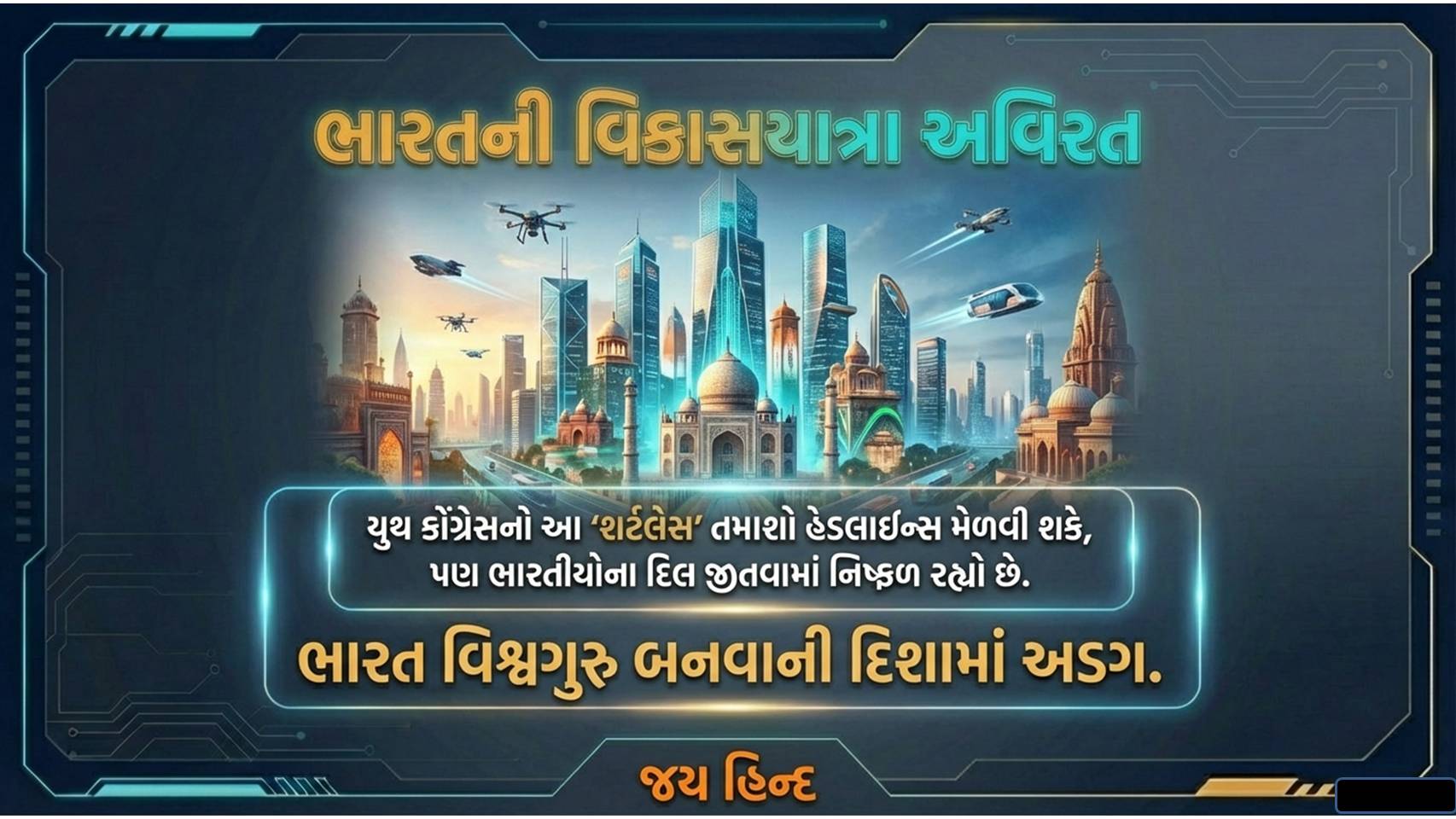 ભારત જ્યારે આર્ટિફિશિયલ ઈન્ટેલિજન્સ (AI) ના માધ્યમથી ખેતી, આરોગ્ય અને શિક્ષણ ક્ષેત્રે ક્રાંતિ લાવવા જઈ રહ્યું છે, ત્યારે આવા છીછરા રાજકીય પ્રદર્શનો ભારતની છબીને નુકસાન પહોંચાડે છે. વિરોધ કરવાનો લોકતાંત્રિક અધિકાર સૌને છે, પરંતુ જ્યારે વિદેશી મહેમાનોની હાજરીમાં દેશના સન્માનની વાત હોય, ત્યારે આવી વર્તણૂક કોઈ પણ રીતે સ્વીકારી શકાય નહીં.
