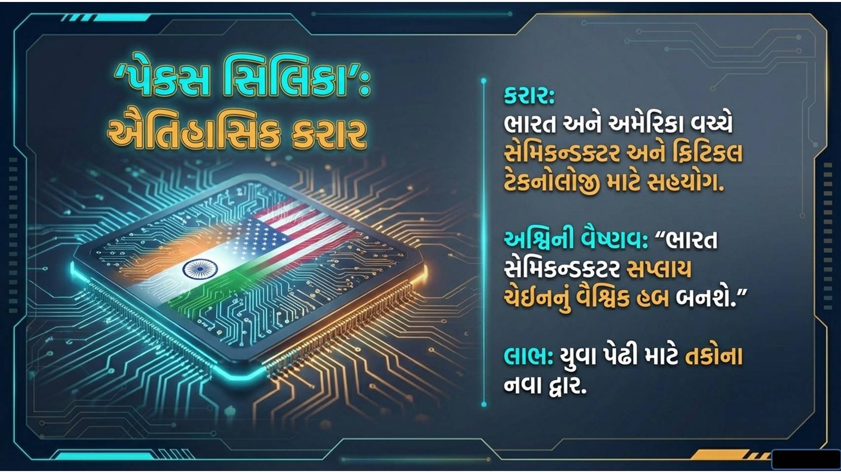 AI સમિટ 2026 : આ રાજકીય તમાશા વચ્ચે પણ ભારતે આ સમિટમાં ઘણી મોટી સિદ્ધિઓ હાંસલ કરી છે. ભારત અને અમેરિકાએ કટોકટીની ટેકનોલોજી અને સેમિકન્ડક્ટર ક્ષેત્રે સહયોગ વધારવા માટે ‘પેક્સ સિલિકા’ (Pax Silica) કરાર પર હસ્તાક્ષર કર્યા છે. કેન્દ્રીય મંત્રી અશ્વિની વૈષ્ણવે જણાવ્યું હતું કે, આ કરારથી ભારતની યુવા પેઢી માટે તકોના નવા દ્વાર ખુલશે અને ભારત સેમિકન્ડક્ટર સપ્લાય ચેઈનનું વૈશ્વિક હબ બનશે.