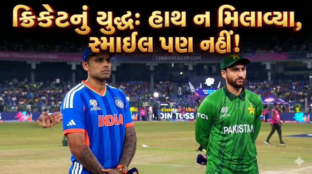 T20 વર્લ્ડ કપ 2026 : મેચની પૂર્વસંધ્યાએ જ્યારે સૂર્યકુમાર યાદવને આ વિશે પૂછવામાં આવ્યું ત્યારે તેણે મજેદાર રીતે કહ્યું હતું કે, “હું સસ્પેન્સ કાલે તોડીશ, 24 કલાક રાહ જુઓ”. અને બરાબર 24 કલાક પછી જ્યારે મેદાન પર દ્રશ્યો સર્જાયા ત્યારે પાકિસ્તાની ટીમ માટે સંદેશ સ્પષ્ટ અને લૂખો હતો—કોઈ હાથ મિલાવવામાં આવશે નહીં. આ ઠંડક એવી હતી કે કોલંબોની ગરમીમાં પણ પાકિસ્તાની ખેલાડીઓને ધ્રુજારી છૂટી ગઈ હશે, કારણ કે સપ્ટેમ્બરમાં રમાયેલા એશિયા કપથી ચાલી આવતો આ સ્ટેન્ડ-ઓફ હજુ પણ બરફ જેવો જામી ગયો છે.