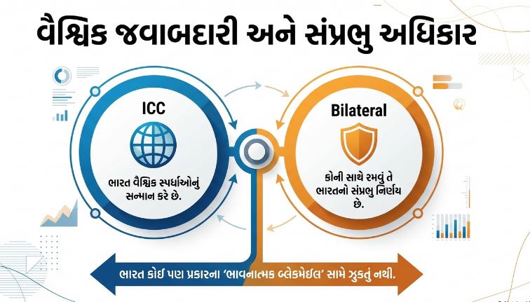T20 વર્લ્ડ કપ 2026 : રાષ્ટ્રહિત જ સર્વોપરી, T20 વર્લ્ડ કપ 2026 માત્ર એક ટૂર્નામેન્ટ નથી; તે ભારત–પાકિસ્તાન સંબંધોની વાસ્તવિકતા દર્શાવતું એક દર્પણ છે.