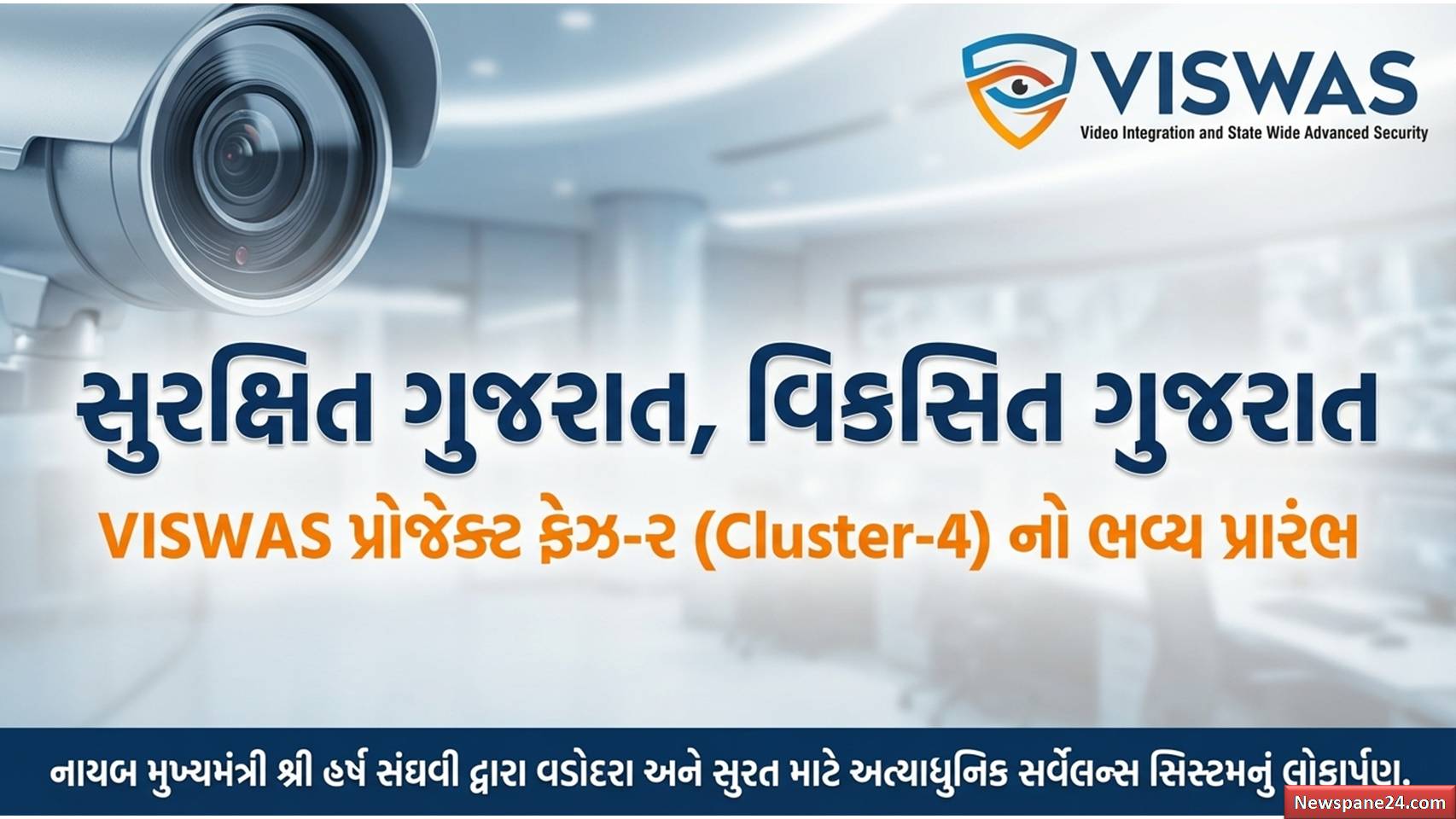 VISWAS : “સુરક્ષિત ગુજરાત, વિકસિત ગુજરાત”ના મંત્રને સાર્થક કરવા માટે રાજ્ય સરકાર દ્વારા વધુ એક મોટું કદમ ઉઠાવવામાં આવ્યું છે. વડોદરાની ઐતિહાસિક ધરતી પરથી નાયબ મુખ્યમંત્રી હર્ષ સંઘવી દ્વારા VISWAS પ્રોજેક્ટ ફેઝ-૨ (Cluster-4) નો ધમાકેદાર પ્રારંભ કરવામાં આવ્યો છે. આ સાથે જ વડોદરા શહેર પોલીસ ભવનમાં અત્યાધુનિક ‘નેત્રમ’ (Integrated Command & Control Room) નું પણ લોકાપર્ણ કરવામાં આવ્યું છે.