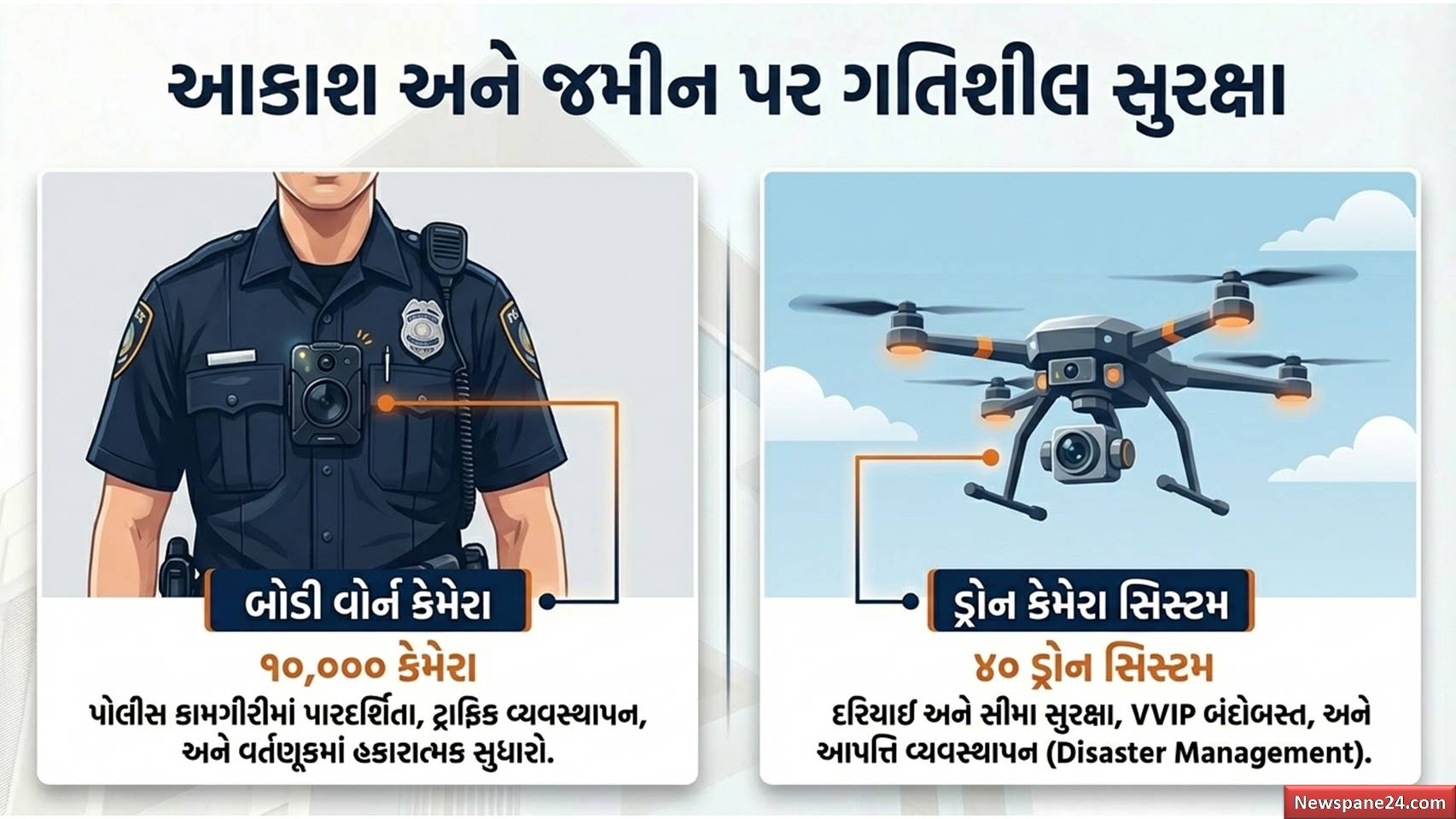 - ANPR કેમેરા: જે વાહનોની નંબર પ્લેટ આપોઆપ વાંચી લેશે.